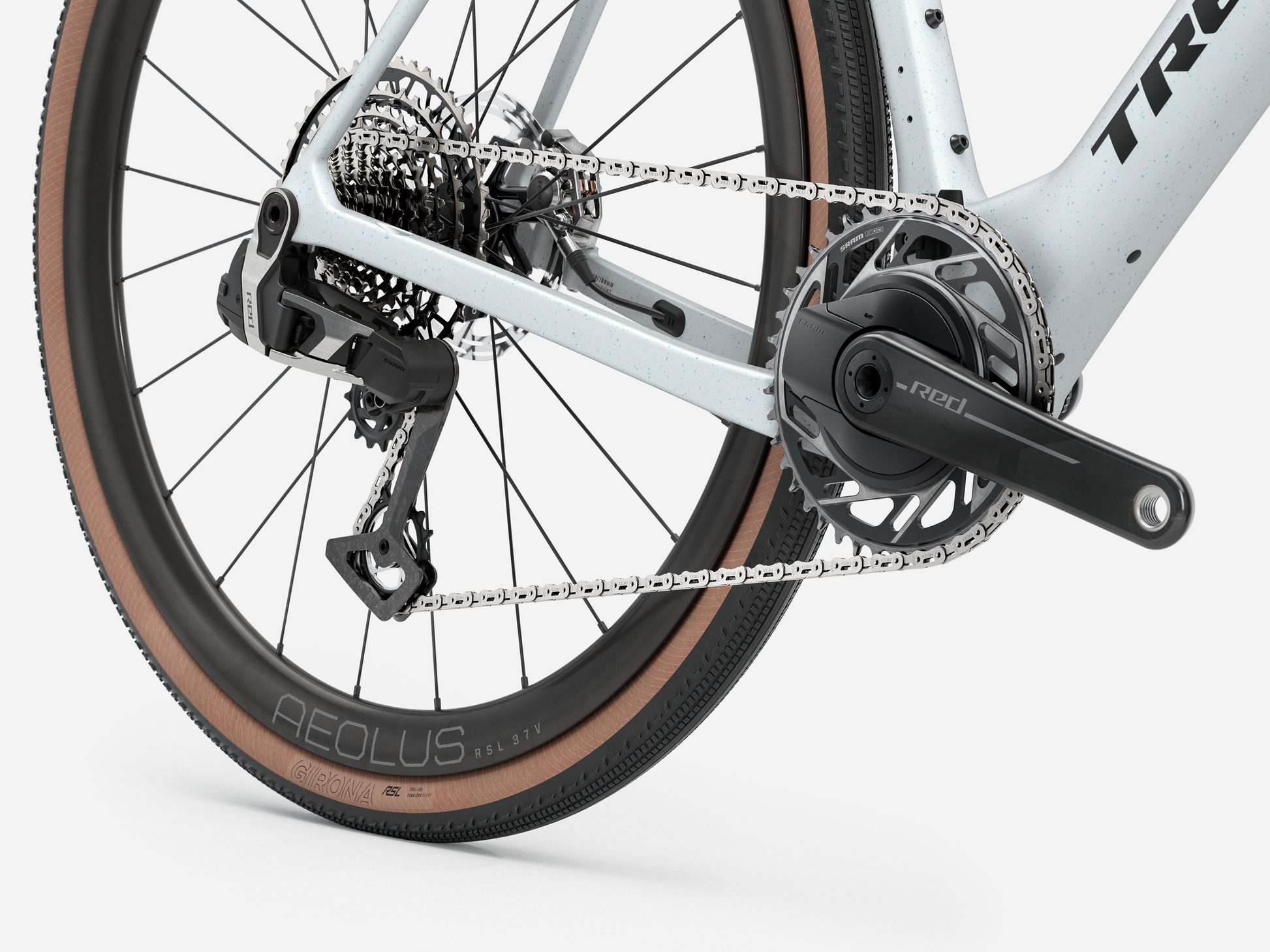 A lightweight and aerodynamic 800 Series OCLV Carbon frame with IsoSpeed comfort technology and plenty of mounts to carry race-day essentials. Bontrager Aeolus RSL 37V carbon wheels and a Trek Aero RSL carbon bar/stem that keep your ride light and nimble. Plus, SRAM's lightest and most ergonomic RED XPLR AXS drivetrain with wireless shifting that's built for rougher roads.