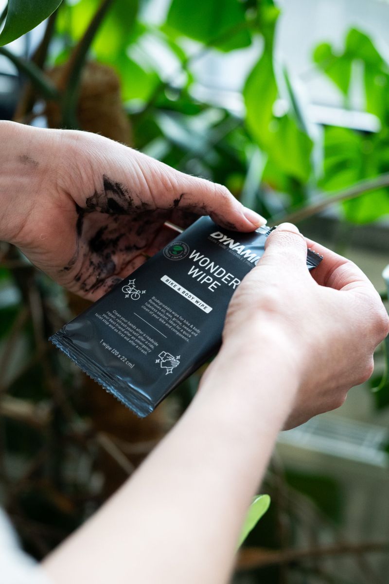 Wonder Wipes are made from Bamboo, a biodegradable cellulose. They quickly degrade in nature (of course, we recommend disposing of them in the bin after use). One package of Wonder Wipes contains seven single-packed wipes, what makes it easy to bring one on all rides. We advise always storing a wipe in your saddlebag, car, jersey, or wherever you think it can be useful. Wonder Wipes have a high absorption capacity and a fresh citrus fragrance.