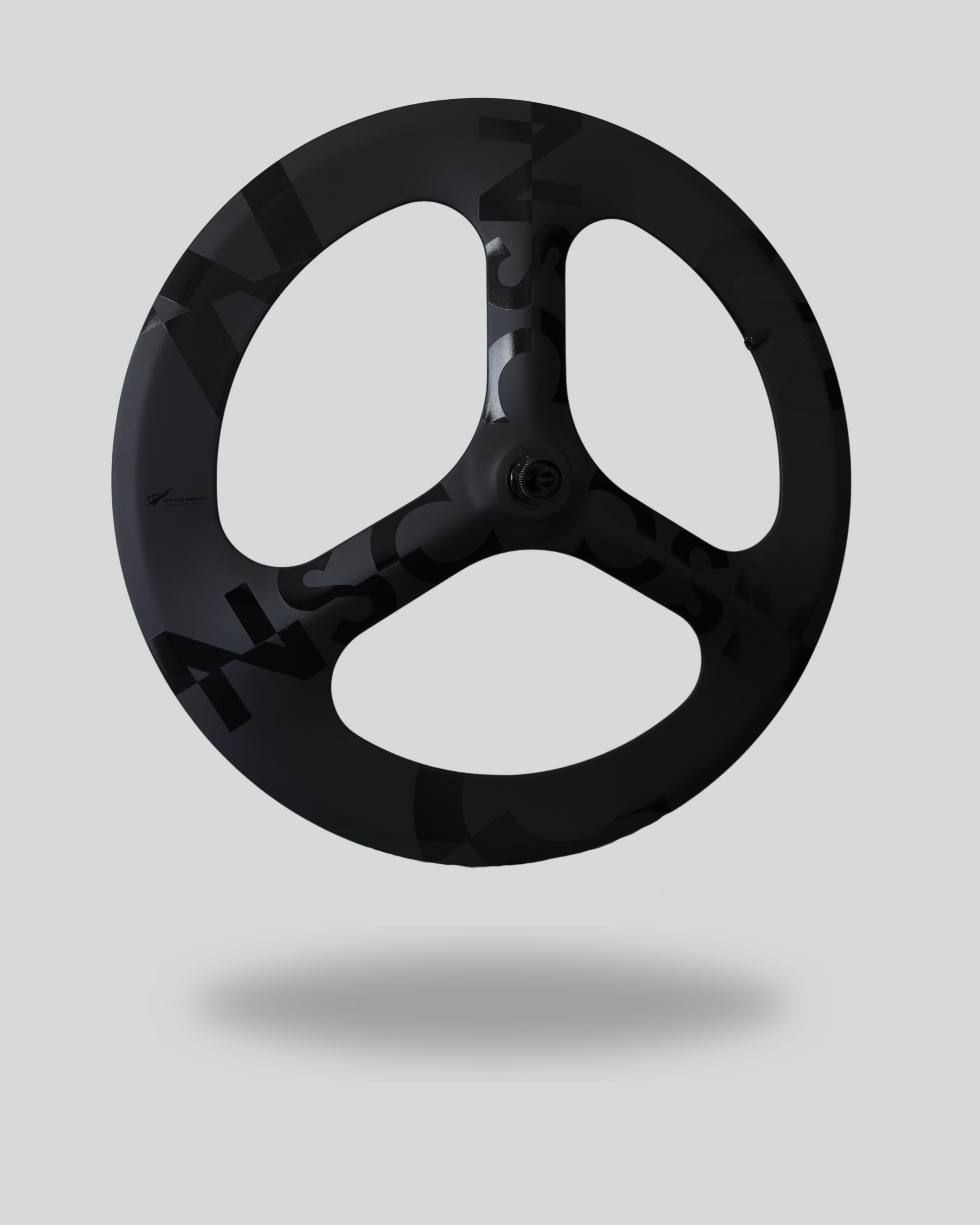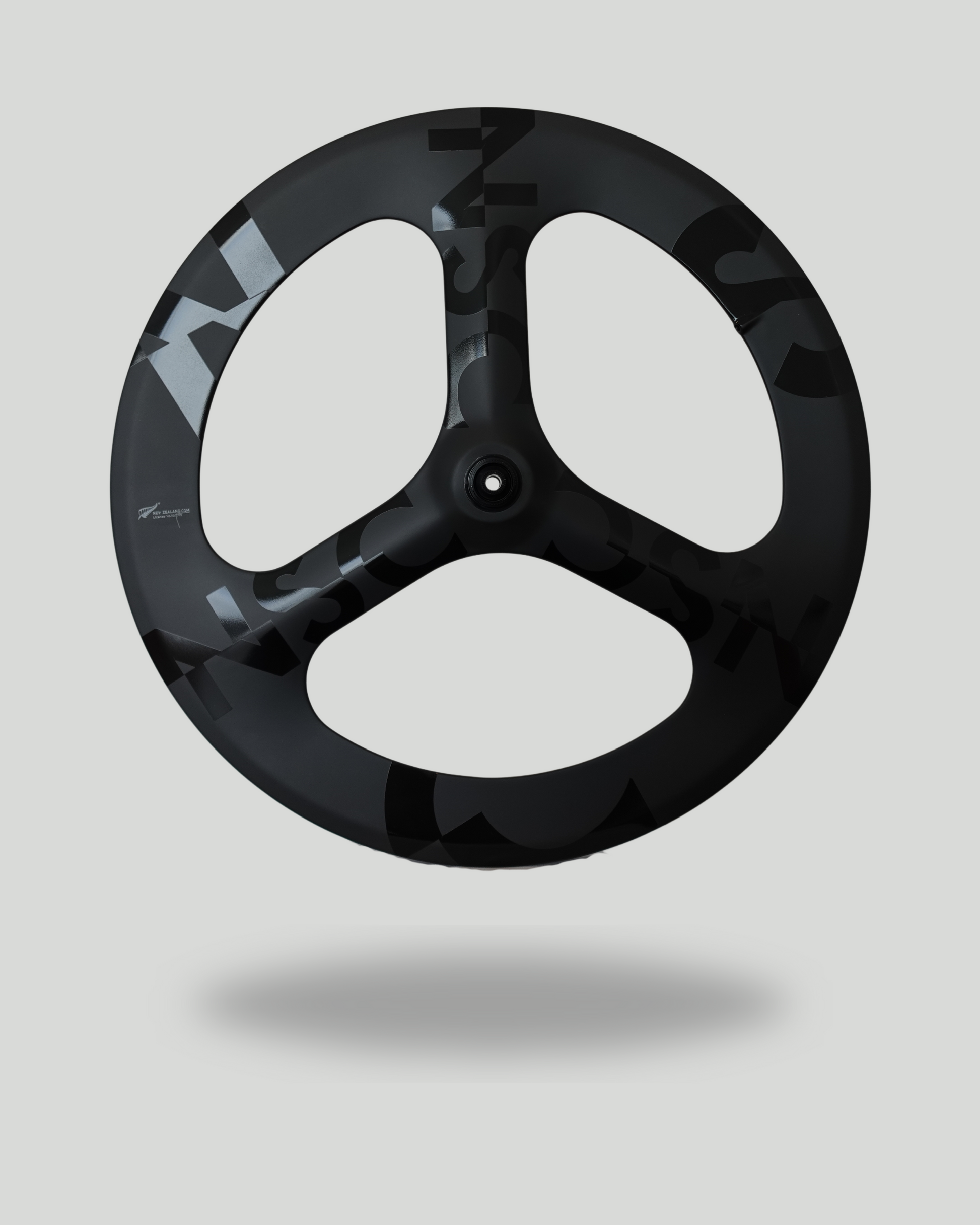 Let us introduce you to our NS Tri-spoke - NS Disc's best race companion. Exchanging traditional spokes for carbon on the front significantly ups aerodynamic benefits while also shedding weight. The three carbon fibre blade-like spokes with a smaller frontal area help better dissipate air to reduce overall drag, while the 70mm deep rim still maintains front end manoeuvrability. An extremely rigid ride like this gives more control at speed too - making acceleration easier and steering more precise.