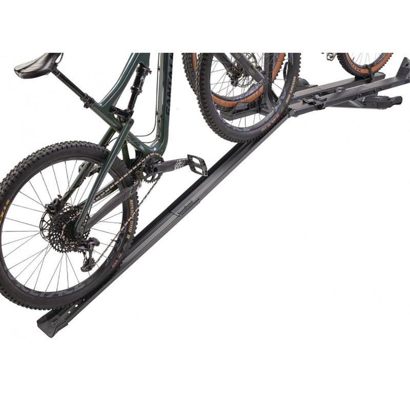 No awkward loading here. Loading heavy bikes on the StageTwo family of racks is no problem with the RampUp, just lock the ramp in place and roll your bike up onto the tray